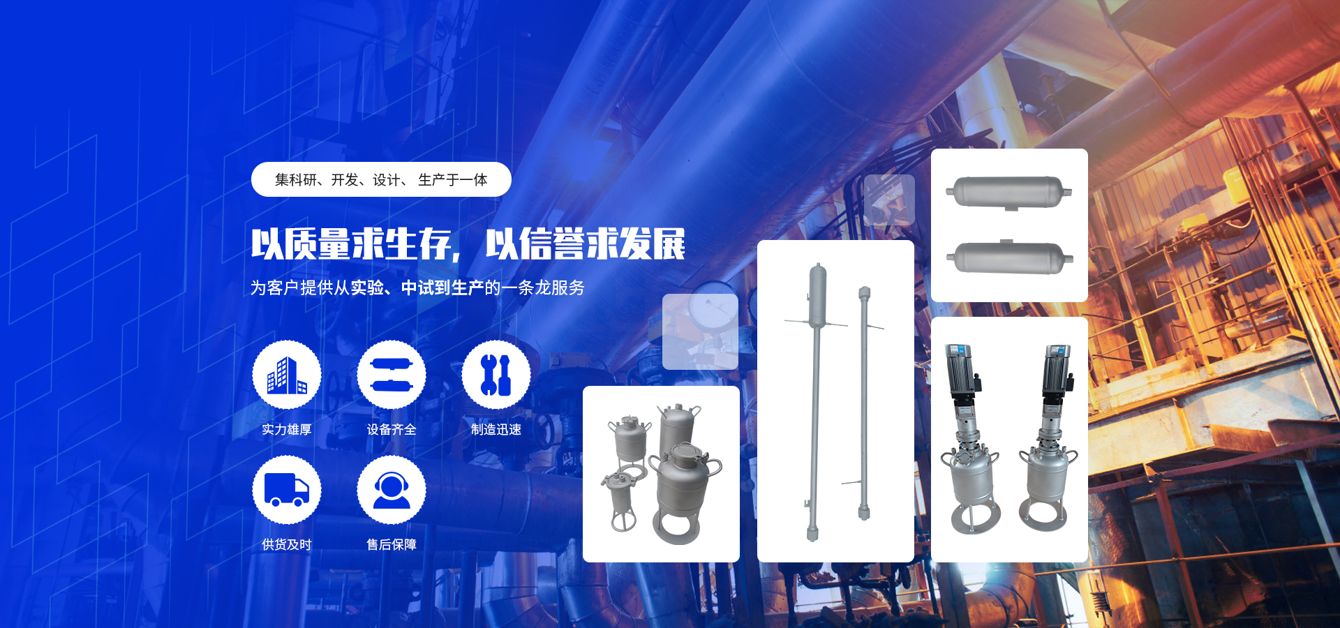 主要生产化工生产用反应釜及配套磁力搅拌器、实验室用:高压反应釜、不锈钢反应釜、玻璃反应釜、实验室反应釜、水热反应釜、均相反应器、连续反应装置、瓶聚槽反应装置等各种非标设备及各种类型配套控制仪。